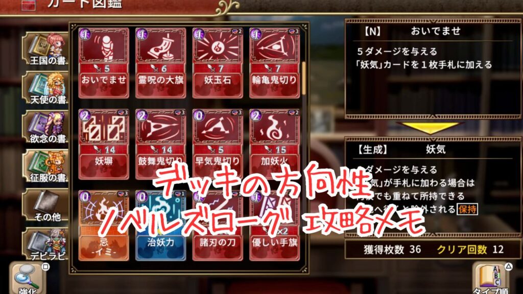 デッキの方向性としては、呪いのデバフで倒すデッキか、網魔除鬼切りをメインにした鬼切りデッキになるかなと思います。