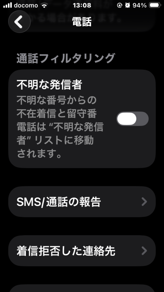 不審な電話を防ぐ方法(iPhone) 投稿者: nerusora | 2026年2月19日 0件のコメント 設定を開き、電話と検索して、電話をタップします。 ずっと下の方をみていくと、不審な発信者をスクリーニングという項目があり、消音というのがあるので、それをタップするとチェックが入ります。 これで、保存されていない番号からの着信の場合、留守番電話に自動的に送られます。 さらにその下に、通話フィルタリングという項目があり、不明な発信者をリストに移動させる項目があります。 オンにしておくと、良いかもしれません。