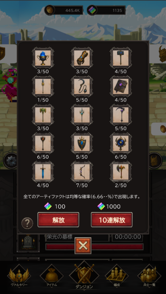 ジェムの使い道はいろいろとあるのですが、個人的にはアーティファクトがおすすめです。