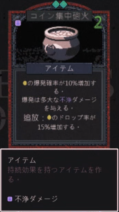 コインが出ると不浄ダメージを与える爆発が発生するカード。