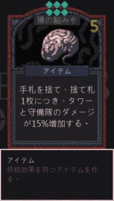 基本は4枚ドローなので、最初に使えば45%アップ。それもタワーでも守備隊でも効果が適用されるのが強みです。
