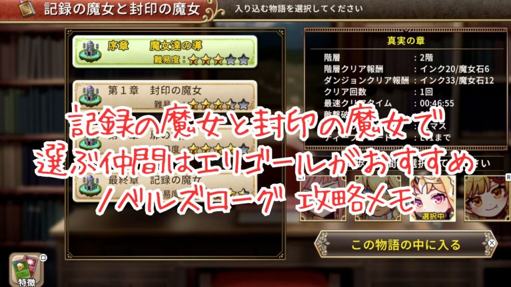 記録の魔女と封印の魔女のシナリオでは、4人のキャラクターから1人選んでプレイすることになります。