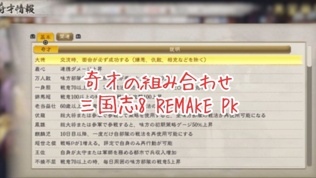 趙雲の奇才 一身胆と組み合わせるのも手ですが、一身胆は趙雲だけなので、部隊全体で奇襲がしやすい本組み合わせの方が実用的かなと思います。