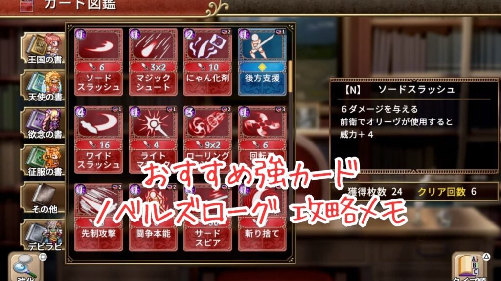 雑魚戦ではそれほど役立ちませんが、強敵やボス戦などで長期戦になればなるほど、デッキ圧縮の効果が効いてくるので、1枚あると便利です。