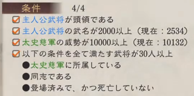 - 主人公武将の武名が2000以上