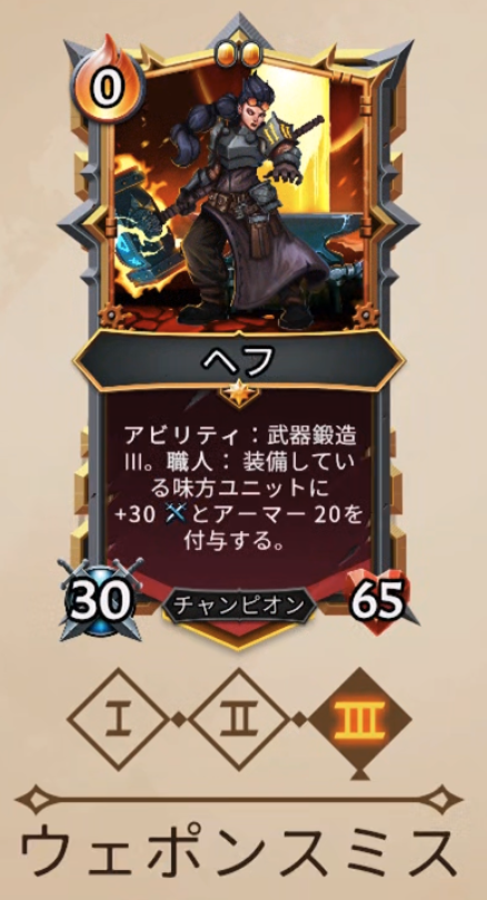 アビリティ:武器鋳造は、装備品を作る効果で、職人は、装備品を付与されたユニットの攻撃力とアーマーがプラスされる効果です。