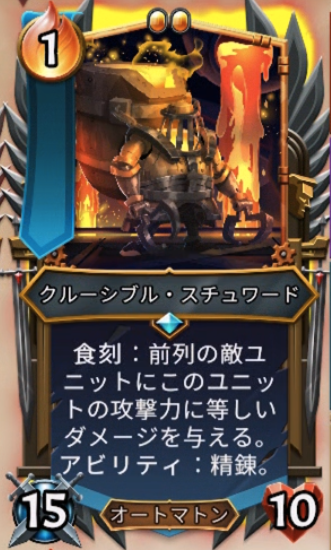 消費カードを使うと、前列の敵ユニットに攻撃力に等しいダメージを与える効果と、アビリティ:精錬があるのが特徴。